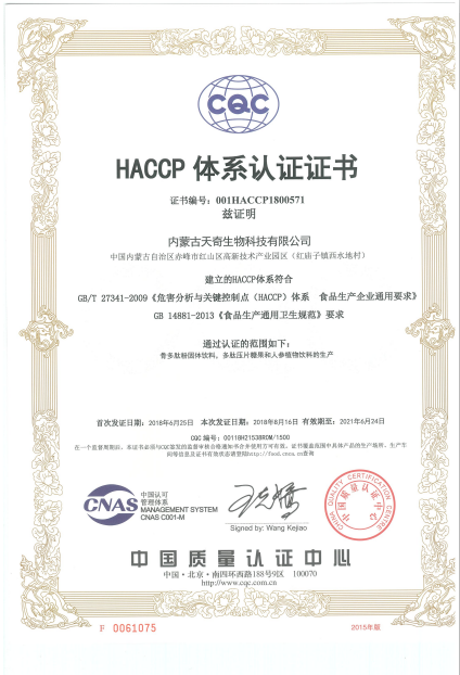 熱烈慶祝天奇生物天奇生物HACCP認(rèn)證、ISO22000體系認(rèn)證、FDA認(rèn)證復(fù)審成功。天奇生物作為集多肽食品原料、現(xiàn)代食品和保健食品研發(fā)、生產(chǎn)和銷售為一體的現(xiàn)代化企業(yè),對生產(chǎn)食品安全衛(wèi)生質(zhì)量控制、建立關(guān)鍵控制點對危害進(jìn)行控制,消除食品安全危害,確保食品在消費的生產(chǎn)、加工、制造、準(zhǔn)備和食用等過程中的安全等方面一直不懈努力并獲得中國質(zhì)量認(rèn)證中心的全面肯定。不僅致力于國內(nèi)大健康產(chǎn)業(yè)的拓展和銷售,同時積極開拓海外市場獲得FDA認(rèn)證,這也標(biāo)志著天奇生物相關(guān)產(chǎn)品被相關(guān)部門認(rèn)定,確保食品供應(yīng)安全、干凈、新鮮并且標(biāo)識清楚。注:(天奇生物自成立不久便獲得相關(guān)資質(zhì)認(rèn)證,此次為復(fù)審。)
