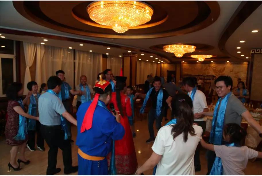 晚宴臨近尾聲,領導與嘉賓們伴隨著蒙古族舞曲手拉手起舞,將晚宴的氛圍推向了高潮。